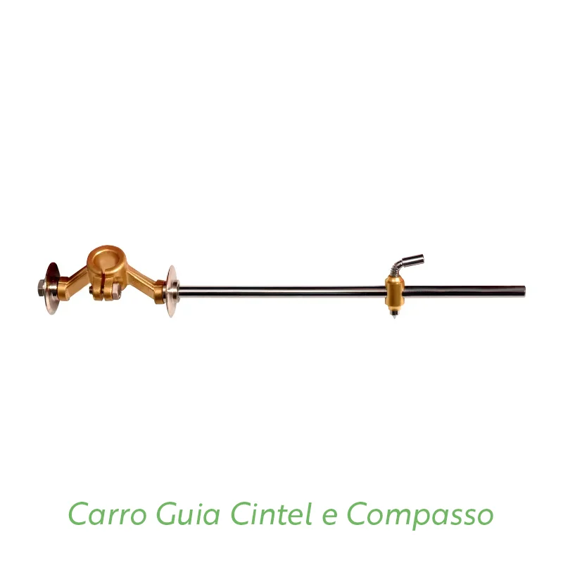 Carro guia para uso em maçaricos de corte. Proporciona um corte uniforme e preciso, mantendo a distância necessária do bico de corte para a chapa.