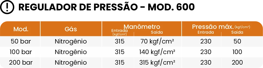 • Pressão máxima de entrada 230 kgf/cm²