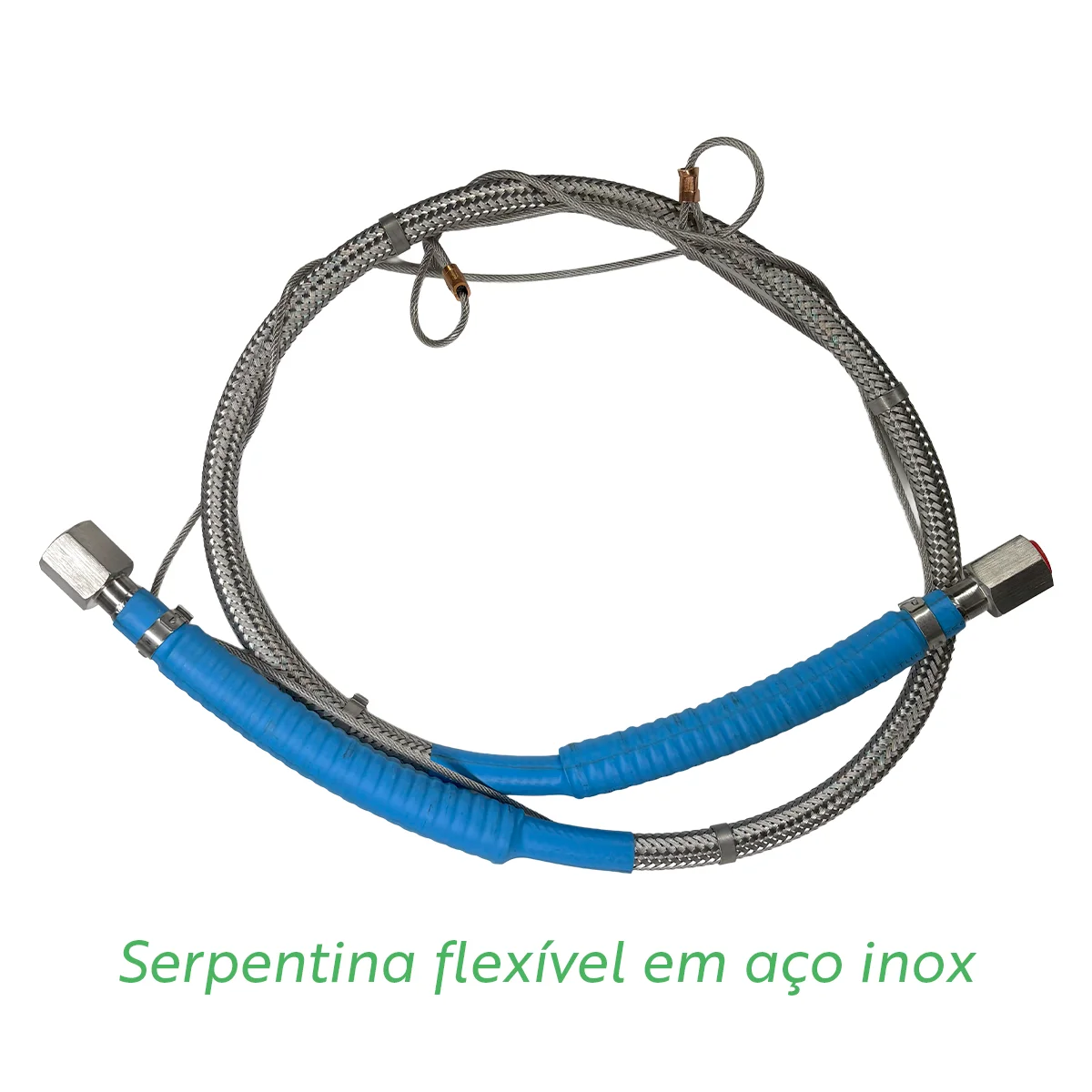 Serpentina flexível em aço inoxidável para transferência de gases em alta pressão. Disponível com pressão máxima de uso 200 kgf/cm² ou 300 kgf/cm².